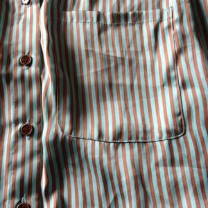 Blue and brownish/orangish striped button up shirt from forever 21! Barely worn, maybe twice.