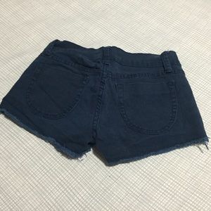 Navy blue shorts with frayed bottoms
