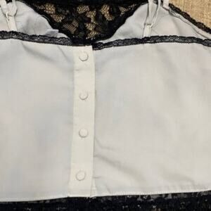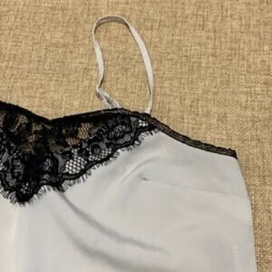 Forever 21 spaghetti strap lace trim top blue black v neck sz Small blouse