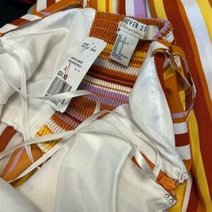 Channel smart looks in your casual wardrobe with this multicolored jumpsuit from Forever 21. Made from high quality fabric, it will provide you with immense comfort throughout the day. Featuring a square neck and striped pattern, this jumpsuit possesses a fashionable appeal. Style this jumpsuit with a pair of wedges for a classy modish look.