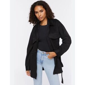 Forever 21 sz MEDIUM faux suede trench coat jacket BLACK belted button wrap NWT