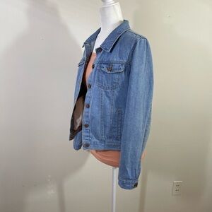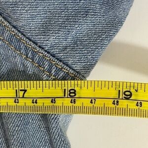 Nice denim jacket. Some shading to the denim. Great condition. Metal buttons. Four front pockets. Nice feel to the fabric. No holes or rips. Measurements are pit to pit flatfold about 18”. The length from the top of the shoulders to the bottom edge is about 21”. No visible flaws. Any questions please ask and we will answer ASAP. Den