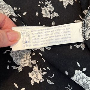 Forever 21 szS black & white flowered kimono cover up w/lace on sleeves EUC