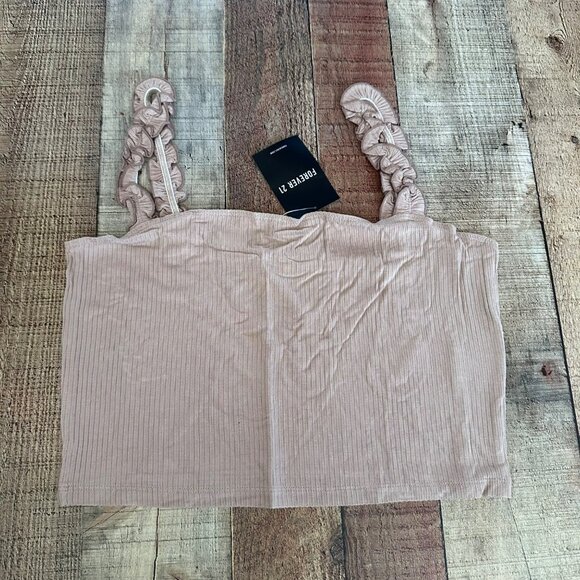 Forever 21 tan taupe knit cropped tank top with ruffle sleeves women's Large NWT