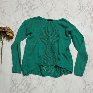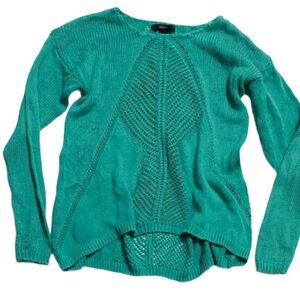 F21 teal open crochet knit sweat in size medium. Small snag as pictured.