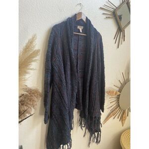 Forever 21 women’s long sleeve open front knit Boho Fringe oversized Cardigan S.