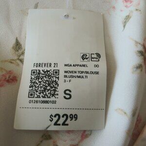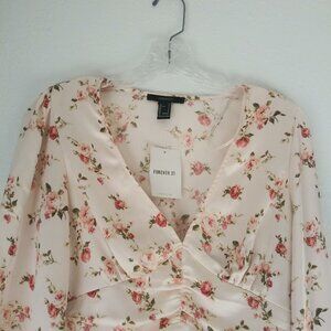 Forever 21 women's size S cream, pink and green floral long sleeve crop top