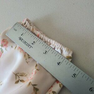 Forever 21 cream, pink and green floral V-Neck crop blouse, long puff sleeves, smocked at the back