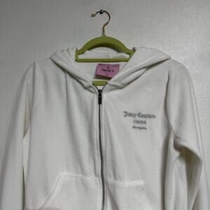 Forever 21 x Juicy Couture White Full Zip Track Hooded Jacket Sz L