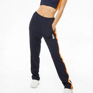 From the Forever 21 x Wilson collection, a pair of textured stretch-knit track pants featuring an elasticized banded waist, front seam construction, multicolor stripes at the sides, on-seam pockets, and a front "Wilson" text logo graphic.
