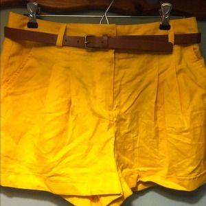 Forever 21 yellow shorts with brown belt
