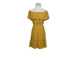 Forever 21 yellow white polka dots off shoulder mini dress size Small