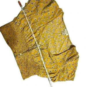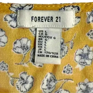 Forever 21 yellow white smocked floral print cropped v neck short sleeve top L