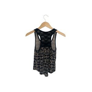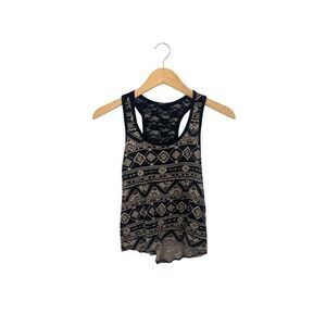 Forever 21 Black Beige Aztec Geometric Print Racerback Tank Top Women’s Small