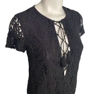Forever 21 Black Lace Plunging Lace Up Neckline Dress sz Small NEW