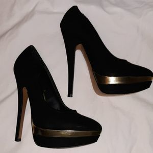 Forever 21 Black Platform Pumps w Gold Accent 6