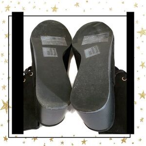 Super cute pair of Forever 21 black, suede, lace-up, peep toe, wedge sandals.