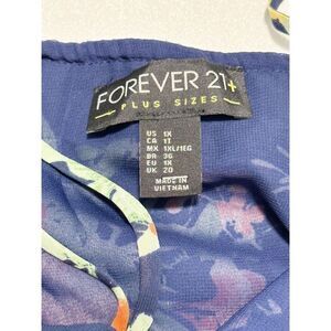 Forever 21 Criss Cross Floral Sleeveless Spaghetti Strap Tank Top Blue Plus 1X
