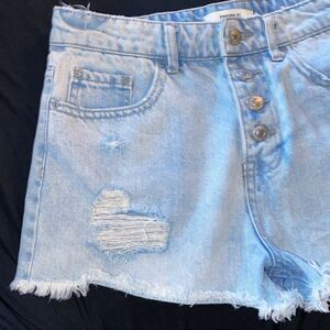 Forever 21 Distressed Jean Shorts Women’s Size 28 Light Wash Button Fly