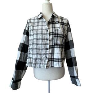 Forever 21 Flannel Cropped Plaid Shirt 100% Cotton Long Sleeve SZ M