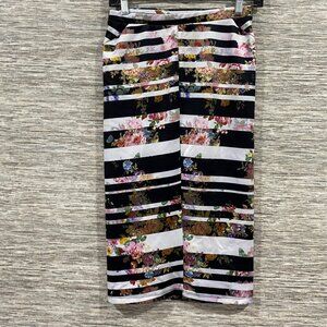 Forever 21Floral Striped Midi Pencil Skirt Size Small - Multicolor Polyester Ble