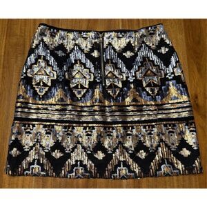 Forever 21 Mini Skirt Size Small Black Gold Silver Sheer Sequin Aztec Design