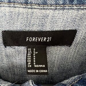 Forever 21 Oversized Jean Jacket Blue Denim Relaxed Boyfriend Coat Size Small