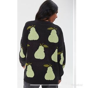 Forever 21 Pear Print V-Neck Chunky Cardigan Sweater