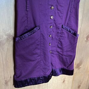 Forever 21 Purple Button-Front Dress with princess sleeves, belt loops, and satiny trim. Two breast pockets and two front patch pockets. Very fun, flattering, and comfortable. Does not come with belt.
