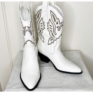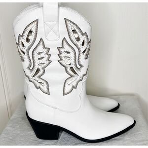 Forever 21 Remmington White Pointed-Toe Western Ankle Boots Size 6 New
