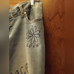 Groovy retro 60's 70's bohemian wide leg low rise jeans with 5 functional pockets button and zip closure Inseam approximately 31 inches length 39 inches Rise 7 inches Waist 14.5 inches