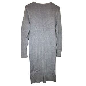 Forever 21 Ribbed Knit V-Neck Button Front Long Cardigan Sweater Blue Gray Large