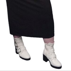 Forever 21 White Faux Leather Buckle Chunky Platform Ankle Boots Size 8