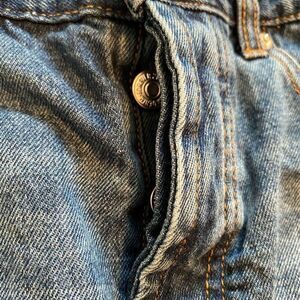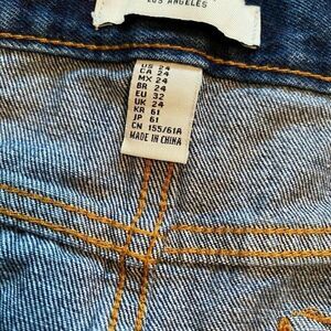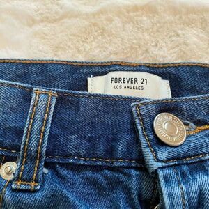 Forever 21 Womens Jean Mini Skirt Sz 24 Button Fly Cut Off Frayed Distressed b2. Condition is "Pre-owned".
