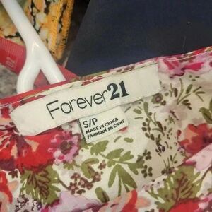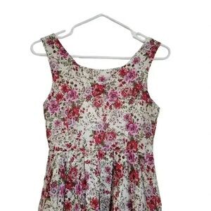 Forever 21 Women's White, Red & Pink Cotton Floral Sleeveless A-Line Lined Dress EUC sz S