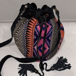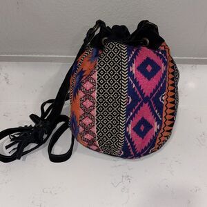 Forever 21 boho crossbody bucket bag Peruvian Aztec style multi colored.