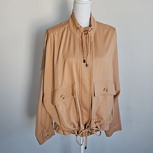 Forever Audrey Womens size L Tan Utility Jacket zipper closure drawstring waist