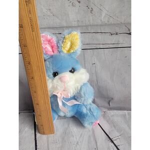 Forever Beautiful Bunny Rabbit Yellow Pink Blue Plush Easter Stuffed Animal 7in in good condition tag has some fading and wear