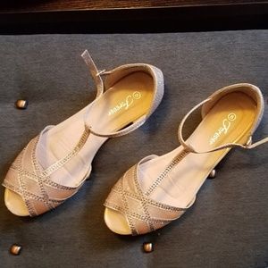 Rhinestone and glittery flats, wore for a wedding. Size 8, runs large.