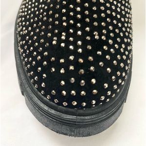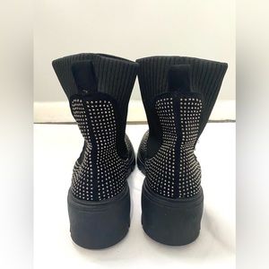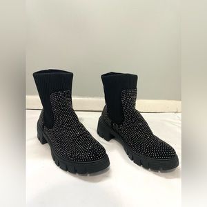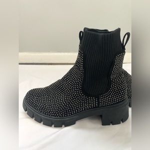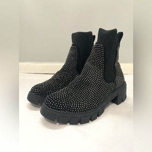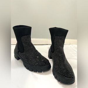 Forever Black Rhinestone Knit Combat Boot | Left boot has all of its rhinestones , Right boot is missing at the front about 7 little rhinestones but is completely unnoticeable other than that it’s an amazing condition never worn hood as new | Size 8.5