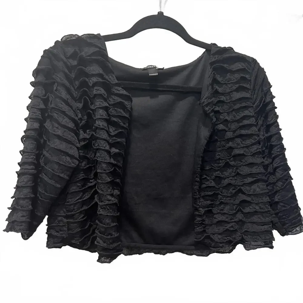 Forever Black Ruffle Textured Open Front Jacket