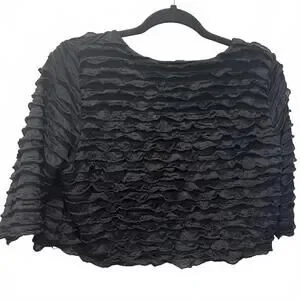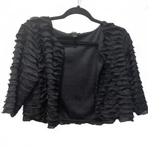 Elegant black jacket featuring a unique ruffle textured design throughout.