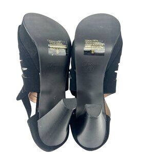 Forever Black Suede Strappy Platform Sandals 4 in with Gold Buckles Size 9