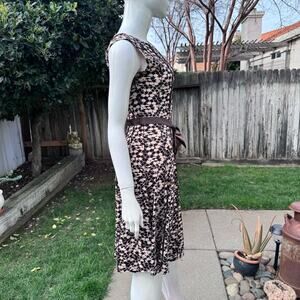 Forever Brown Cream Circle Design Outside Seams Women's Size Small Petite. In good preowned condition. Measurements are approximate taken flat.