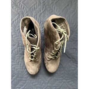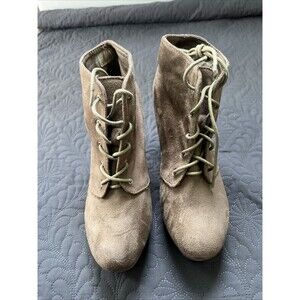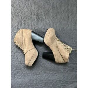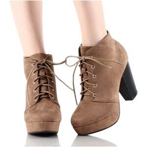 Forever Camille-86 Chunky Heel Platform Lace Up Ankle Booties Taupe SZ 8.5 NWOB