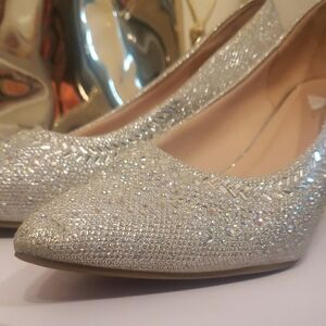 Step into elegance with these silver heels from Forever Collectibles, featuring a shimmering finish that catches the light beautifully. The medium-height heels and classic pointed-toe design ensure both comfort and style, making them ideal for weddings or other special occasions.