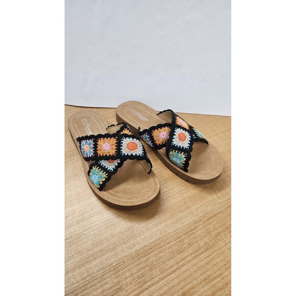 Forever Comfort Sandals Shoes Womens Size 8.5 Boho Crochet Slide Slip On Summer