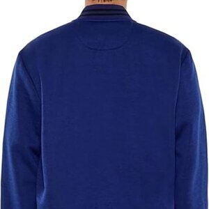 Forever Dark Navy Varsity-Striped Fleece Bomber Jacket SZ M