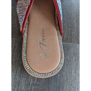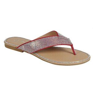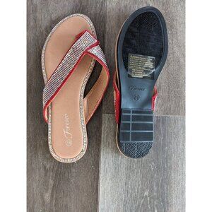 Forever Fannie-101 Red Rhinestone Flat Sandals – Women’s Size 8.5 – Sparkly Summer Style