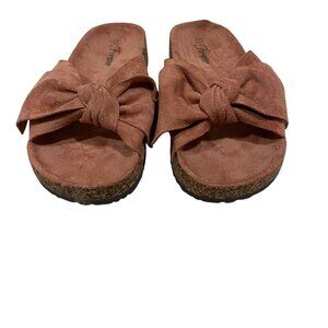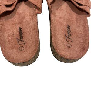 Forever Fuax Suede Mauve Bow Slip On Sandal Size 7 NWOB